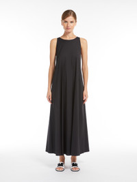 DETAILS Long sleeveless dress in soft cotton poplin fabric. The fluid-fit A-line model boasts a deep back neckline which can be adjusted by the volume-bestowing back-tying drawstring shoulder straps. COMPOSITION AND CARE 78% cotton, 20% polyamide, 2% elastane. Machine wash cold delicate cycle; do not bleach; do not tumble dry; line drying in the shade; cool iron; professionally dry clean perchloroethylene - normal process. Distributed by Max Mara S.r.l., registered office in Reggio Emilia (Italy), Via Giulia Maramotti 4, 42124 (IT)