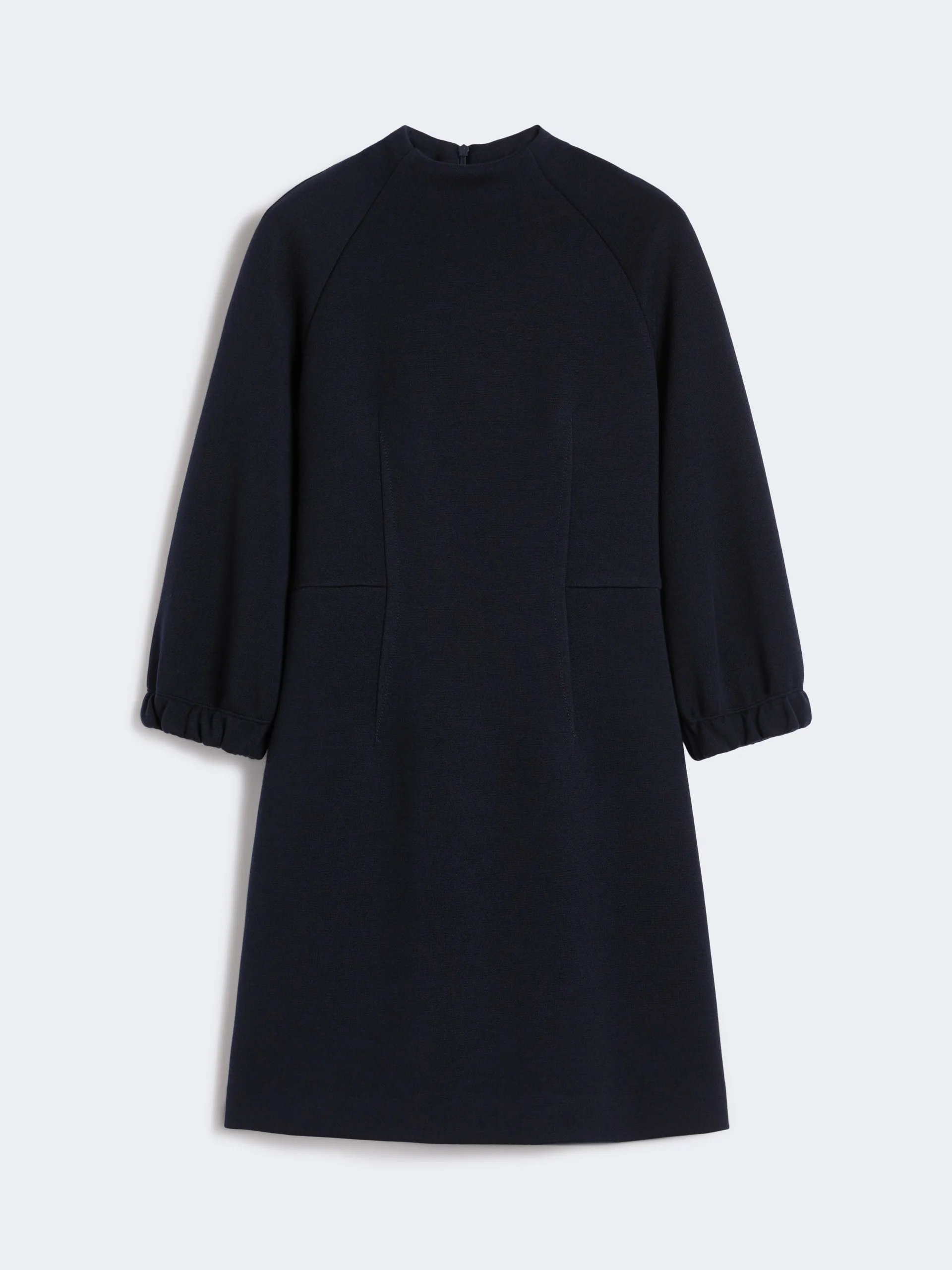 DETAILS Short dress in a figure-hugging style slightly flared at the hem. Cotton and wool double jersey dress Stand collar Three-quarter raglan sleeves with gathered elastic cuff Back zip fastening Darts motif sewn into waistband at front and back Unlined COMPOSITION AND CARE 46% wool, 44% cotton, 10% polyester. Hand wash cold (40°c max); do not bleach; do not tumble dry; flat drying in the shade; cool iron; professionally dry clean perchloroethylene - mild process; do not wet clean.; iron with a cloth between.; using neutral detergent.; don’t rub.; turn the articles inside out before washing.; to be ironed on reverse. Distributed by Max Mara S.r.l., registered office in Reggio Emilia (Italy), Via Giulia Maramotti 4, 42124 (IT)
