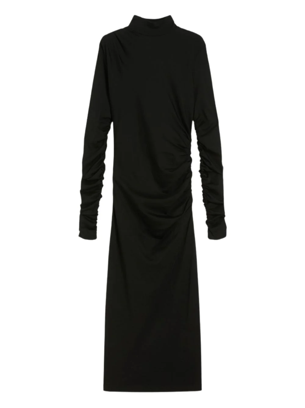 ruched dress Highlights - Black - Roll neck - Long sleeves - Ruched detail Imported Composition Fabric 100% Washing instructions Read Manufacturer Guidelines