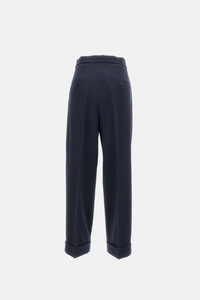 Wool blend trousers Made in Italy Front fastening with zip and hooks Side pockets Cuffed hem Details and Care Color: Blu Composition: 98% VIRGIN WOOL 02% EA Made in: Italia Sku: 2611131111600002