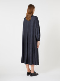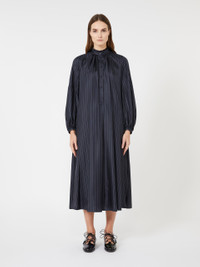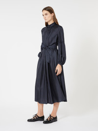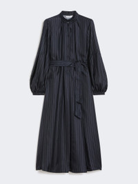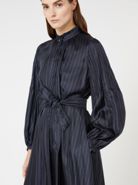 DETAILS Long dress with flowing silhouette and a matching belt that accentuates the waistline. Pure silk fabric dress Flared Mandarin collar Long sleeves that puff out slightly towards the cuff Polo-style fastening with front buttons Central reverse pleat at the back Unlined COMPOSITION AND CARE 100% silk. Do not wash; do not bleach; do not tumble dry; cool iron; professionally dry clean perchloroethylene - mild process; do not wet clean.; wash the garment while it is fastened.; do not iron the buttons.; protect buttons before washing.; turn the articles inside out before washing. Distributed by Max Mara S.r.l., registered office in Reggio Emilia (Italy), Via Giulia Maramotti 4, 42124 (IT)