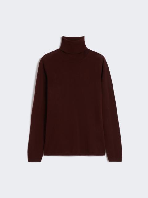 DETAILS Turtleneck jumper featuring a seamless construction that ensures a comfortable and cosy fit. Lightweight, brushed pure wool yarn turtleneck jumper Regular fit High neck Long sleeves Straight hem COMPOSITION AND CARE 100% virgin wool. Hand wash cold (40°c max); do not bleach; do not tumble dry; flat drying in the shade; cool iron; professionally dry clean perchloroethylene - mild process; do not wet clean.; iron with a cloth between.; using neutral detergent. Distributed by Max Mara S.r.l., registered office in Reggio Emilia (Italy), Via Giulia Maramotti 4, 42124 (IT)