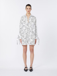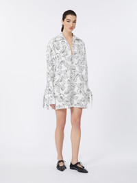 DETAILS Straight-fit short dress featuring shirt dress-typical details. Dress in printed pure cotton poplin fabric V-slit shirt collar on the front Drop-shoulder long sleeves Topstitched large patch breast pockets Long cuffs with tie detail Small squared-off side slits COMPOSITION AND CARE 100% cotton. Machine wash cold delicate cycle; do not bleach; do not tumble dry; line drying in the shade; cool iron; professionally dry clean perchloroethylene - mild process. Distributed by Max Mara S.r.l., registered office in Reggio Emilia (Italy), Via Giulia Maramotti 4, 42124 (IT)