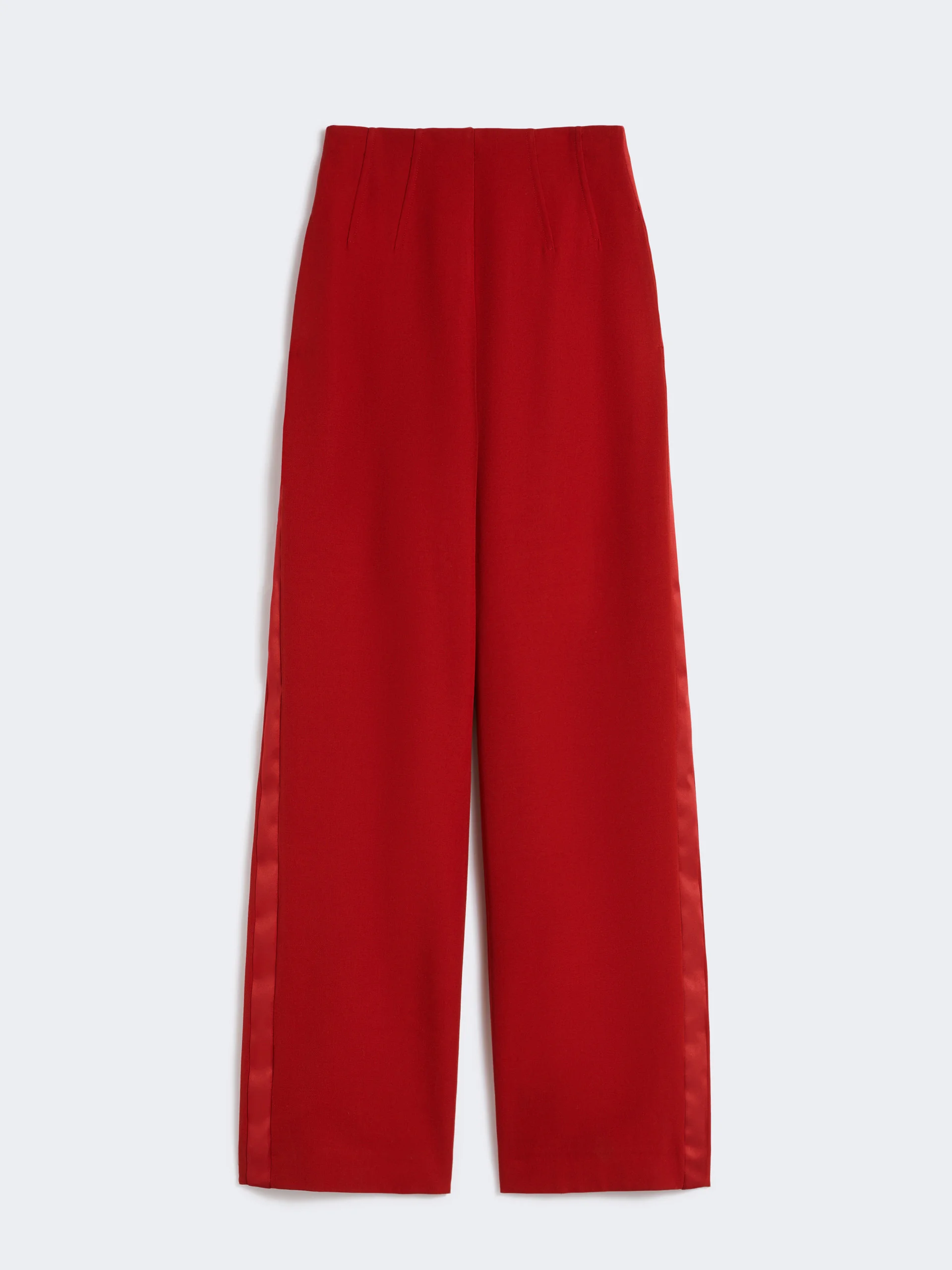 DETAILS Long trousers, featuring a high-waisted silhouette with bustier details on the front and back. Pure wool gabardine trousers with an organza feel Straight cut Back concealed zip fastening Side inset pockets Welt pockets at the back Side bands in tone-on-tone satin COMPOSITION AND CARE 100% virgin wool. Do not wash; do not bleach; do not tumble dry; cool iron; professionally dry clean perchloroethylene - mild process; do not wet clean. Distributed by Max Mara S.r.l., registered office in Reggio Emilia (Italy), Via Giulia Maramotti 4, 42124 (IT)