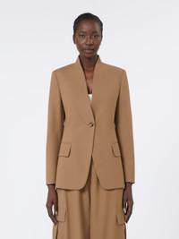 DETAILS Slim-fit single-breasted jacket with a relatively fitted waist. Jacket in fluid pure cotton twill fabric Band collar Set-in sleeves with slit detail on the cuffs Single-button fastening on the front Flap-adorned double-welt pockets on the front Central rear slit Lined model COMPOSITION AND CARE Fabric 100% cotton; lining 100% cotton. Do not wash; do not bleach; do not tumble dry; cool iron; professionally dry clean perchloroethylene - mild process; do not wet clean.; do not iron the buttons.; protect buttons before washing.; contains non-textile parts of animal origin. Distributed by Max Mara S.r.l., registered office in Reggio Emilia (Italy), Via Giulia Maramotti 4, 42124 (IT)