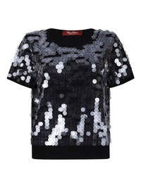 sequin-embellished short-sleeve T-shirt Highlights - Black - Sequin embellishment - Round neck - Short sleeves - Virgin wool - This piece features very delicate detailing. handle with extreme care to avoid damage such as broken feathers or loss of sequins. Imported Composition Virgin Wool 100% Washing instructions Read Manufacturer Guidelines