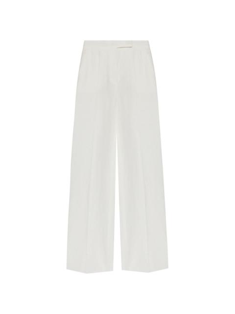 Sequoia trousers Highlights - Coffee brown - Concealed front button, hook and zip fastening - Two side slit pockets - Two rear welt pockets - Straight leg Made in Italy Composition Linen/Flax 100% SIZE & FIT Model measurements Height 5 ft 11 in(1.8 m) Bust/Chest 31.49 in(80 cm) Hips 36.61 in(93 cm) Waist 24.4 in(62 cm) FittingInformation Designed with a wide-leg cut, these trousers allow for a close fit at the waist and offer a loose and roomy fit over the leg Made from a midweight non-stretch fabric