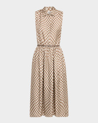 Sesia Checker Silk Sleeveless Midi Shirtdress