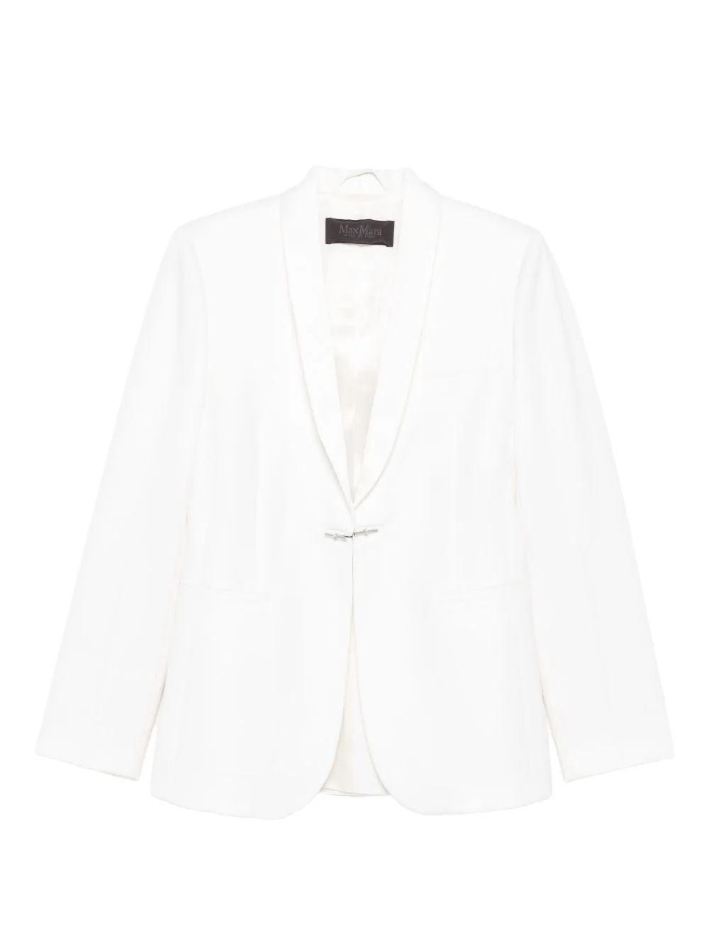 shawl-collar blazer Highlights - White - Shawl collar - Front fastening - Long sleeves - Front pockets - Straight hem Made in Italy Composition Virgin Wool 100%, Polyester 100% Lining: Acetate 65%, Polyester 35% SIZE & FIT Model measurements Height 5 ft 11 in(1.8 m) Bust/Chest 31.49 in(80 cm) Hips 36.61 in(93 cm) Waist 24.4 in(62 cm) Washing instructions Read Manufacturer Guidelines