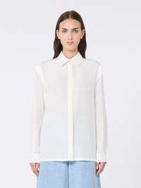 DETAILS Mannish-style shirt featuring button-up sleeves and subtle voluminous shoulders. Pure silk crepe de chine shirt Straight fit Pointed collar Concealed button fastening on the front Button on the side of the double cuffs Straight hem with squared-off side slits COMPOSITION AND CARE 100% silk. Do not wash; do not bleach; do not tumble dry; cool iron; professionally dry clean perchloroethylene - mild process; do not wet clean.; wash the garment while it is fastened.; do not iron the buttons.; protect buttons before washing.; turn the articles inside out before washing. Distributed by Max Mara S.r.l., registered office in Reggio Emilia (Italy), Via Giulia Maramotti 4, 42124 (IT)