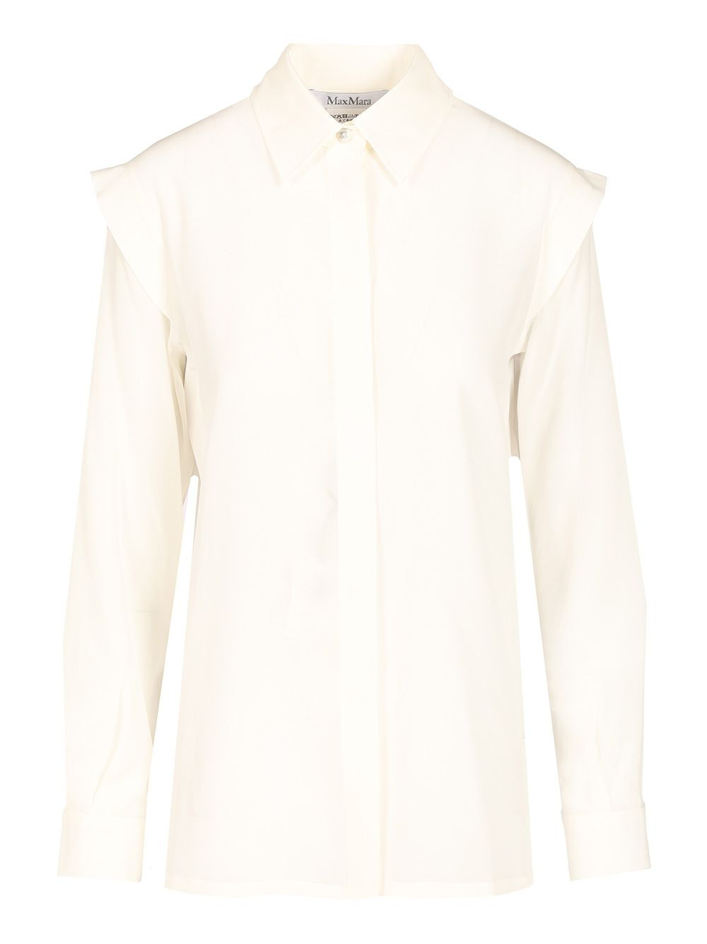 Crepe de Chine shirt by Max Mara, with pointed collar, long low-cut sleeves, cuffs with side buttons and front fastening with hidden buttons - Colour: White - Composition: 100% Silk - Country Of Manufacture: PT - MPN: 2521116101600124001