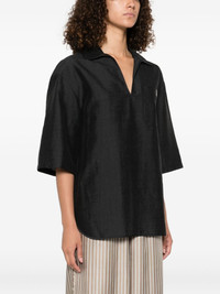 short sleeve shirt Highlights - Black - Front button fastening - Half sleeves - Spread collar - Patch pocket at the chest - Curved hem Made in Italy Composition Linen/Flax 47%, Silk 39%, Polyamide 14% SIZE & FIT Model measurements Height 5 ft 10 in(1.79 m) Bust/Chest 31.88 in(81 cm) Hips 35.43 in(90 cm) Waist 23.62 in(60 cm) Washing instructions Dry Clean Only