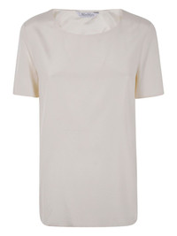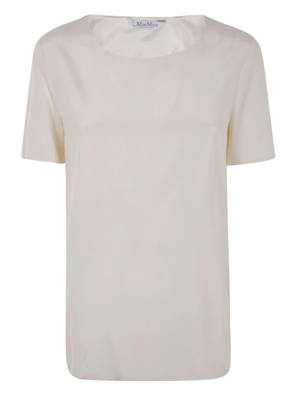 short-sleeve top Highlights - Butter beige - Short sleeves - Round neck - Straight hem Imported Composition Silk 93%, Elastane 7% Washing instructions Read Manufacturer Guidelines