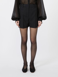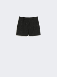 DETAILS Tailoring-inspired shorts embellished with micro sequins embroidered with a pinstripe effect. Pure wool twill shorts Straight cut Fastening with a wide waistband tab, zip fly and small hooks Slant pockets at the sides Welt pockets at the back Trouser crease and belt loops at the waist COMPOSITION AND CARE Fabric 96% virgin wool, 4% polyamide; fabric exclusive of decoration; lining 85% acetate, 10% silk, 5% polyamide. Do not wash; do not bleach; do not tumble dry; cool iron; professionally dry clean perchloroethylene - mild process; do not wet clean.; wash the garment while it is fastened. Distributed by Max Mara S.r.l., registered office in Reggio Emilia (Italy), Via Giulia Maramotti 4, 42124 (IT)