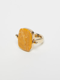 DETAILS "Double face" metal ring with a versatile design for numerous styling options. Gold-coloured plated metal ring One side is in "marble effect" resin The other has a metal plate and engraved M Monogram logo COMPOSITION AND CARE Style in metal; with details in resin. Distributed by Max Mara S.r.l., registered office in Reggio Emilia (Italy), Via Giulia Maramotti 4, 42124 (IT)