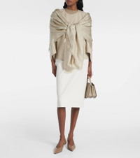 Boasting a rich manufacturing history, Max Mara represents the quintessence of Italian sophistication and expertise. Crafted in Italy from silk and wool, this scarf features subtle tonal patterns all over. Product Details - Material: 75% silk, 25% wool - Care instructions: dry clean - Made in Italy - Designer color name: Camel - Item color: beige - Item number: P01039808 Size & Fit - Length 139cm-54.5" - Width 135cm-53"