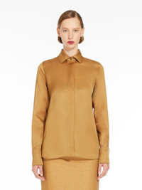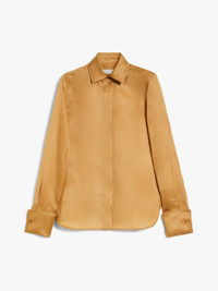 DETAILS Classic men’s-style shirt made of exquisite pure silk triple organza with a satin look. The garment features a classic pointed collar, long set-in sleeves with French cuffs and rounded hem with side slits. Finished with a stitched pleat on the back and fastened with concealed buttons. COMPOSITION AND CARE 100% silk. Do not wash; do not bleach; do not tumble dry; cool iron; professionally dry clean perchloroethylene - mild process; do not wet clean.; do not iron the buttons.; remove the cufflinks before washing. Distributed by Max Mara S.r.l., registered office in Reggio Emilia (Italy), Via Giulia Maramotti 4, 42124 (IT)