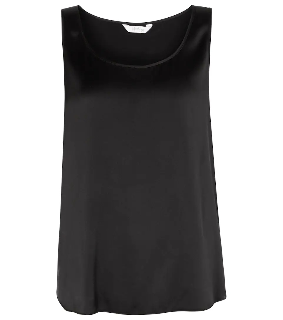 Structure warm weather looks around the airy elegance of Max Mara's black Pan tank top. Made from lustrous stretch-silk, the sleeveless design has a round neck and a relaxed fit. Product Details - Material: 93% silk, 7% elastane - Care instructions: hand wash - Designer color name: Nero - Item number: P00582767 Size & Fit - True to size - Designed for a loose fit - Lightweight material - Falls to the hip - DT = German size - The model seen in the picture is 178cm-5'10" and wearing a size DT 34