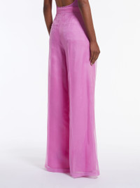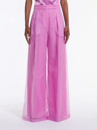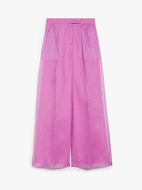 DETAILS Menswear-inspired palazzo trousers, made of luxurious, very lightweight pure silk organza. High-waisted style featuring a wide leg, two pleats at the front and a trouser crease. Embellished with slant side pockets and welt back pockets. Matching lining, fastening with high waistband tab, zip fly and small hook. COMPOSITION AND CARE Fabric 100% silk; lining 85% acetate, 10% silk, 5% polyamide. Do not wash; do not bleach; do not tumble dry; cool iron; professionally dry clean perchloroethylene - mild process; do not wet clean. Distributed by Max Mara S.r.l., registered office in Reggio Emilia (Italy), Via Giulia Maramotti 4, 42124 (IT)