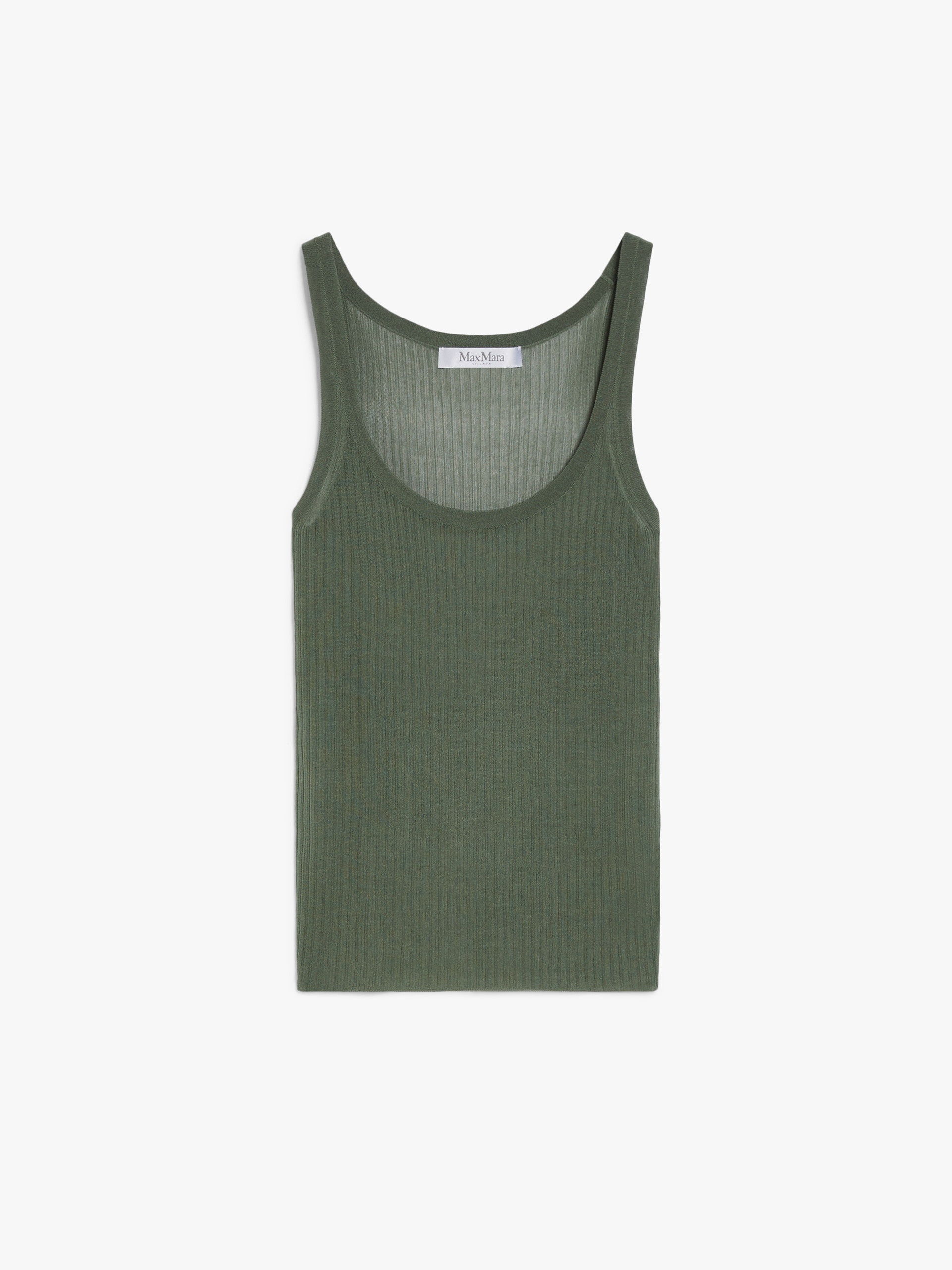 DETAILS Sleeveless top in fine pure silk yarn featuring a flat rib-knit pattern that accentuates the garment’s feminine, slim silhouette. Spaghetti straps, in addition to a wide crew neckline on the front and back. COMPOSITION AND CARE 100% silk. Hand wash cold; do not bleach; do not tumble dry; flat drying in the shade; cool iron; professionally dry clean perchloroethylene - mild process; do not wet clean.; iron with a cloth between.; using neutral detergent. Distributed by Max Mara S.r.l., registered office in Reggio Emilia (Italy), Via Giulia Maramotti 4, 42124 (IT)