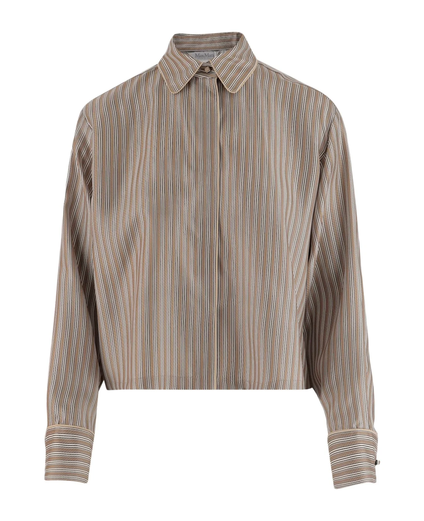 Shirt made of silk twill Pointed collar Front closure with hidden buttons Long sleeves Button cuffs All-over striped pattern Beige Made in Italy Composition: 100% silk Made in: Italy Color: Beige Size and fit: - Model is wearing size 40 IT. - Model measurements: - Height: 175 cm - Chest: 86.5 cm - Waist: 65 cm - Hips: 92 cm - Shoulder: 40 cm Model number: BRAMA002