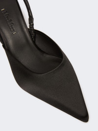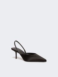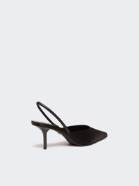 DETAILS Slingbacks with tapered tip, oval top line and ergonomically positioned cigarette heel for greater stability. Slingbacks in viscose and silk bonded fabric Nappa-leather lining Max Mara square logo detail in the hollow of the foot Pumice leather sole with rubber toe Heel height: 6.5 cm COMPOSITION AND CARE Upper in 72% viscose, 28% silk; lining in lamb leather; sole in leather. Distributed by Max Mara S.r.l., registered office in Reggio Emilia (Italy), Via Giulia Maramotti 4, 42124 (IT)