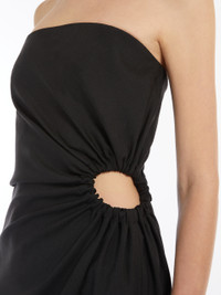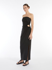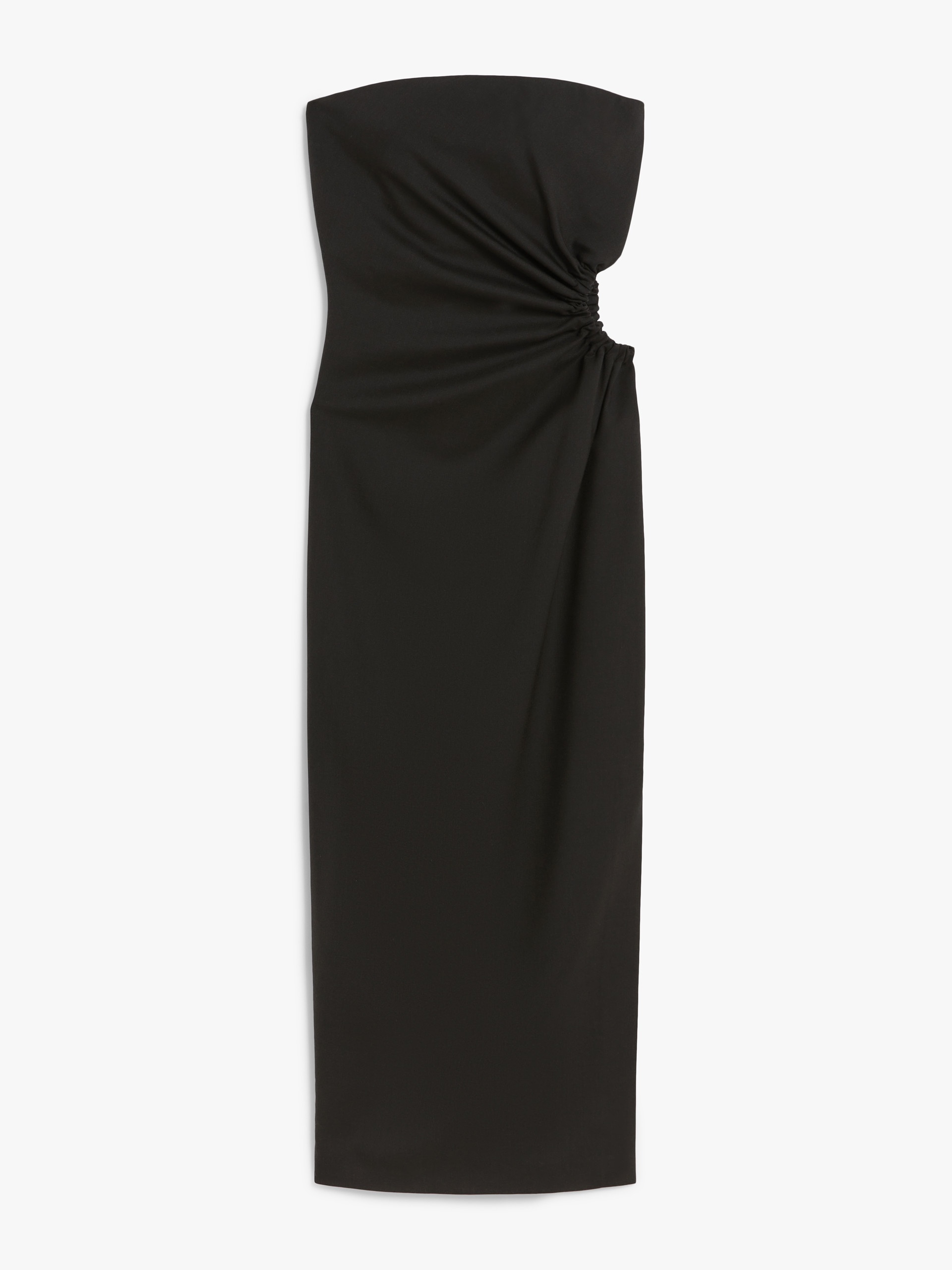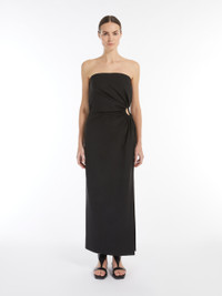 DETAILS Long bustier dress made of luxurious wool, mohair and silk cloth. Semi-lined garment with a close-fitting and feminine silhouette featuring elastic cut-out detail, gathered and draped on the left side when worn, and deep asymmetrical slit at the hem. Invisible zip fastening on the right side. COMPOSITION AND CARE Fabric 71% virgin wool, 18% mohair, 11% silk; lining 100% cotton. Do not wash; do not bleach; do not tumble dry; cool iron; professionally dry clean perchloroethylene - mild process; do not wet clean. Distributed by Max Mara S.r.l., registered office in Reggio Emilia (Italy), Via Giulia Maramotti 4, 42124 (IT)