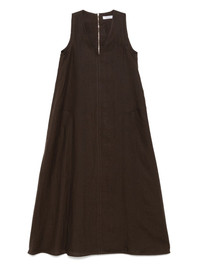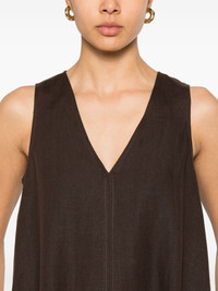 Simeone midi dress Highlights - Chocolate brown - Rear zip fastening - Two side inset pockets - V-neck - Sleeveless Made in Italy Composition Outer: Linen/Flax 100% Lining: Linen/Flax 100% SIZE & FIT Model measurements Height 5 ft 9 in(1.76 m) Bust/Chest 31.88 in(81 cm) Hips 35.43 in(90 cm) Waist 24.8 in(63 cm) FittingInformation Designed to be unstructured, offering a loose fit throughout Made from a midweight non-stretch fabric