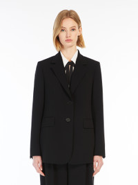 DETAILS Single-breasted blazer featuring a slightly fitted silhouette. Cady blazer Collar and lapels Set-in sleeves with button at the cuff Two-button front fastening Pockets with applied flaps at the front Centre slit on the back Lined COMPOSITION AND CARE Fabric 71% triacetate, 29% polyester; lining 70% acetate, 30% polyester. Do not wash; do not bleach; do not tumble dry; cool iron; professionally dry clean perchloroethylene - mild process; do not wet clean.; wash the garment while it is fastened.; do not iron the buttons.; protect buttons before washing.; turn the articles inside out before washing. Distributed by Max Mara S.r.l., registered office in Reggio Emilia (Italy), Via Giulia Maramotti 4, 42124 (IT)