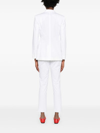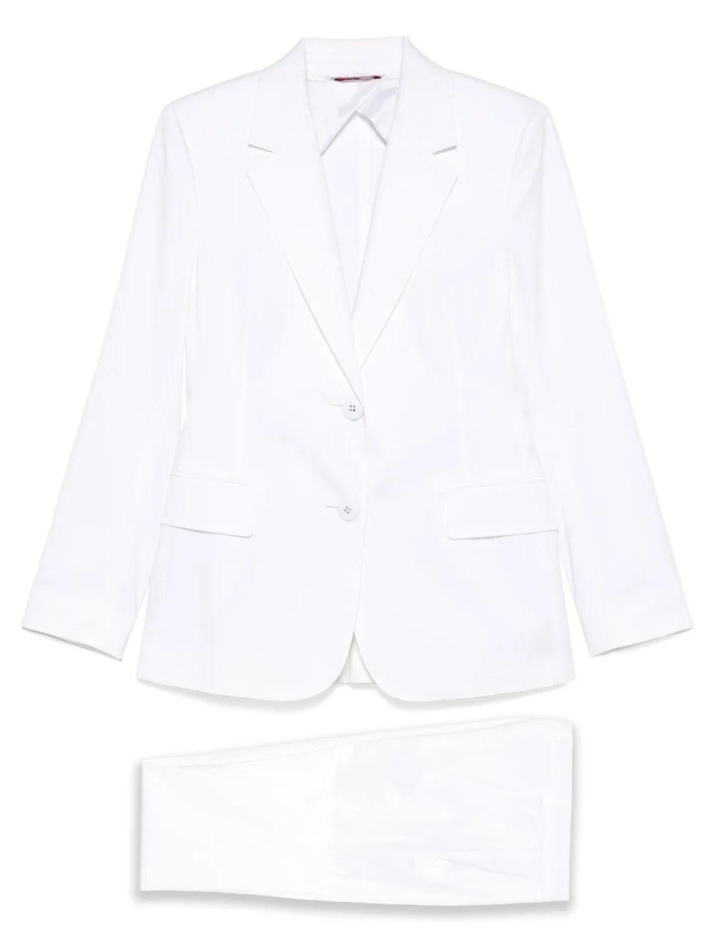 single-breasted suit Highlights - White - Front button fastening - Concealed front fastening - Two front flap pockets - Buttoned cuffs Imported Composition Outer: Cotton 95%, Elastane 5% Lining: Acetate 70%, Polyester 30% SIZE & FIT Model measurements Height 5 ft 11 in(1.81 m) Bust/Chest 33.07 in(84 cm) Hips 36.61 in(93 cm) Waist 24.4 in(62 cm) FittingInformation Designed for a slim fit that sits just away from the body offering a close yet comfortable fit The unfinished hems allow for the length to be altered Made from a midweight stretch fabric, this piece offers elasticity and flexibility when worn