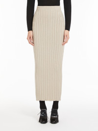 DETAILS Long ankle-length skirt in a wool and cashmere knit. Fitted style featuring a wide rib knit that accentuates the silhouette. Featuring an elasticated waist and rib knit edges. COMPOSITION AND CARE 65% wool, 28% cashmere, 6% polyamide, 1% elastane. Hand wash cold; do not bleach; do not tumble dry; flat drying in the shade; cool iron; professionally dry clean perchloroethylene - mild process; do not wet clean.; iron with a cloth between.; using neutral detergent. Distributed by Max Mara S.r.l., registered office in Reggio Emilia (Italy), Via Giulia Maramotti 4, 42124 (IT)