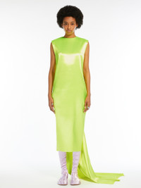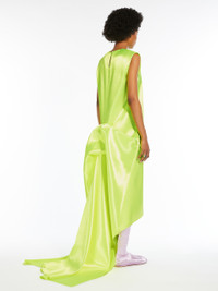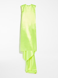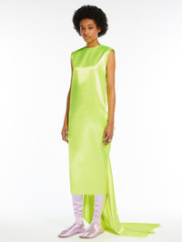 DETAILS Sleeveless dress in technical duchess satin, with a silhouette inspired by Belle Époque styles. The front has a straight cut, while the back features wide draping with an internal crinoline that puffs out the volumes. Back panel that creates a train. Raw-cut hem. • Long sleeveless dress • Made of bonded technical crêpe duchess satin • Line inspired by Belle Époque styles with internal crinoline • Back with train • Back teardrop opening with button • Raw-cut hem COMPOSITION AND CARE 100% polyester. Do not wash; do not bleach; do not tumble dry; cool iron; professionally dry clean perchloroethylene - mild process; do not wet clean.; put this item into a string bag before washing it.; don’t iron the labels.; protect buttons before washing. Distributed by Max Mara S.r.l., registered office in Reggio Emilia (Italy), Via Giulia Maramotti 4, 42124 (IT)
