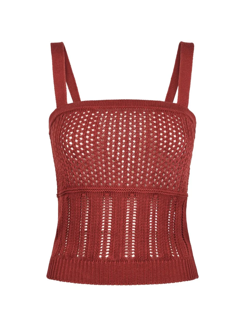 sleeveless knitted top Highlights - Red - Openwork knit - Square neck - Shoulder straps Imported Composition Fabric 100% Washing instructions Read Manufacturer Guidelines