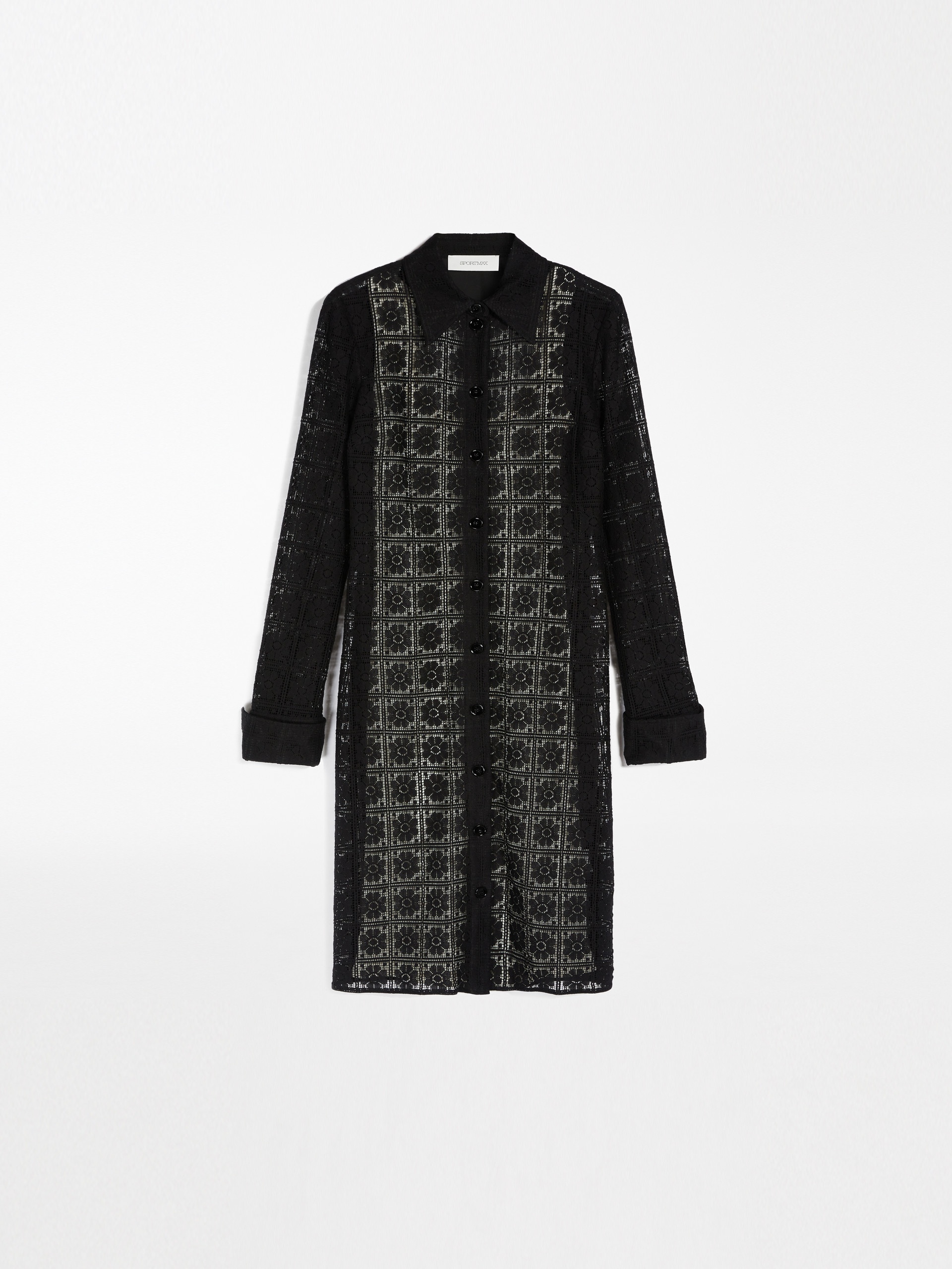 DETAILS Valenciennes lace shirt dress featuring a geometric floral pattern. The feminine, slim-fit model boasts double button-adorned statement cuffs. Visible fastening. The garment comes with a rib-knit cotton and silk halterneck camisole. COMPOSITION AND CARE Jersey dress jersey fabric 88% cotton, 12% nylon; lining 100% cotton. Petticoat 65% cotton, 31% silk, 4% elastane. Jersey dress: do not wash; do not bleach; do not tumble dry; cool iron; professionally dry clean perchloroethylene - mild process; do not wet clean.; Iron with a cloth between.; Don’t iron the labels. Petticoat: hand wash cold; do not bleach; do not tumble dry; flat drying in the shade; cool iron; professionally dry clean perchloroethylene - mild process; do not wet clean.; Iron with a cloth between.; Iron into original measurements.; Using neutral detergent.; Don’t iron the labels. Distributed by Max Mara S.r.l., registered office in Reggio Emilia (Italy), Via Giulia Maramotti 4, 42124 (IT)