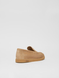 DETAILS Soft suede loafers with classic raised hand-sewn stitching on the upper. Finished with leather lining and enamelled matching-tone logo lettering on the side of the heel. The small internal wedge and the light and highly flexible rubber sole make it modern and versatile. COMPOSITION AND CARE Upper in goat leather; lining in 72% viscose, 28% silk; sole in rubber. Distributed by Max Mara S.r.l., registered office in Reggio Emilia (Italy), Via Giulia Maramotti 4, 42124 (IT)