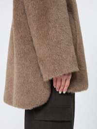 DETAILS Reversible padded midi jacket with a straight silhouette and rounded hem that is longer at the back. Jacket in alpaca and wool with a long-haired faux fur effect Interior in water-repellent diamond-quilted nylon canvas Hood and long sleeves with dropped shoulders Front fastening with double slider zip Welt pockets on the outside and pouch pockets on the interior Goose-down padding COMPOSITION AND CARE Fabric 59% alpaca, 38% virgin wool, 3% cashmere; inner fabric 100% polyamide; with quilting virgin goose-down. Do not wash; do not bleach; do not tumble dry; cool iron; professionally dry clean perchloroethylene - mild process; do not wet clean.; wash the garment while it is fastened.; don’t iron the labels.; contains non-textile parts of animal origin. Distributed by Max Mara S.r.l., registered office in Reggio Emilia (Italy), Via Giulia Maramotti 4, 42124 (IT)