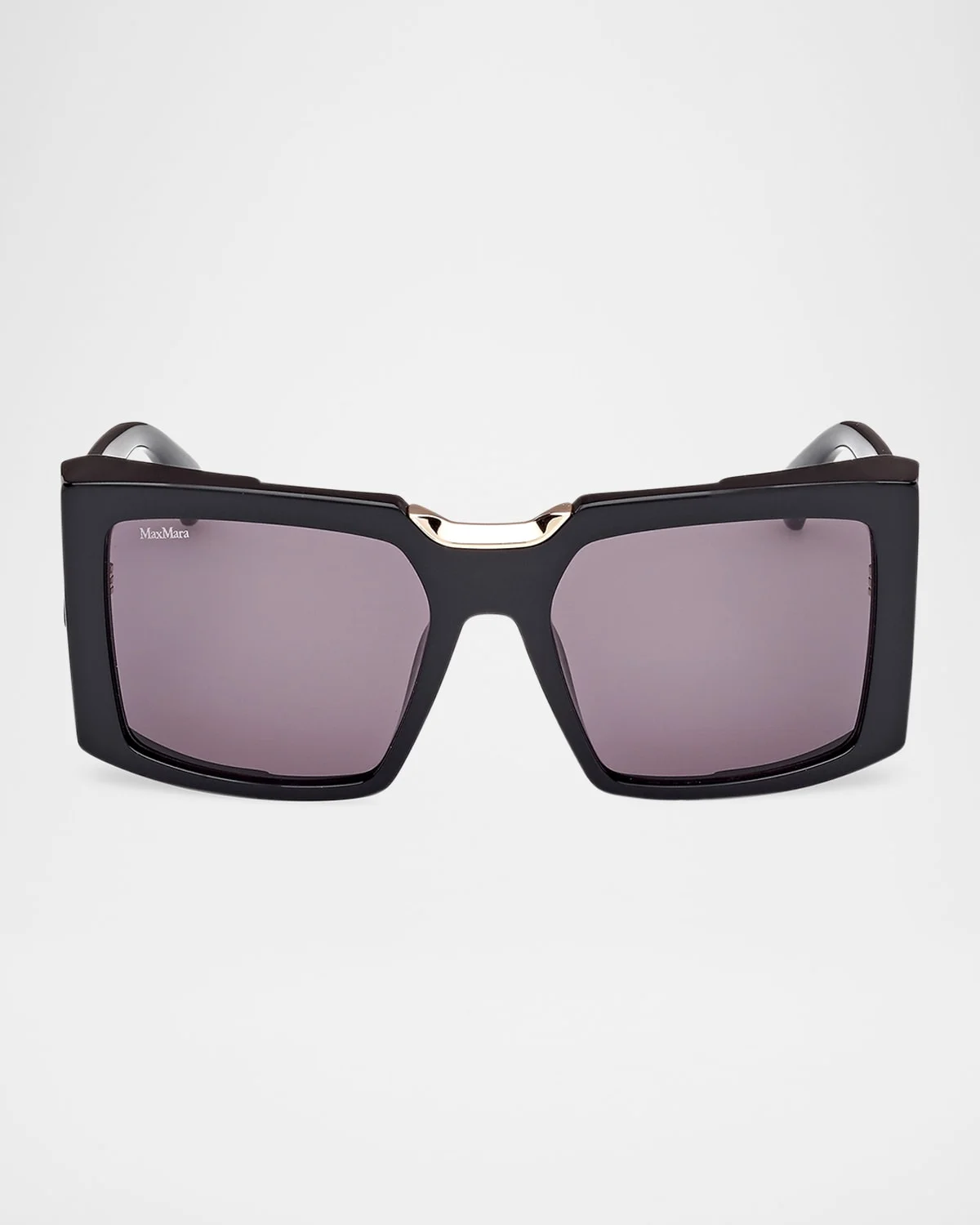 - Max Mara "Spark 6" rectangle sunglasses in acetate - Eye/bridge/temple (in mm): 55-18-135 - Solid color lenses - Saddle nose bridge - Logo at the temples - Thin, tapered arms - Acetate - Spot clean - 100% UVA/UVB protection - Imported - Proposition 65 warning for California residents