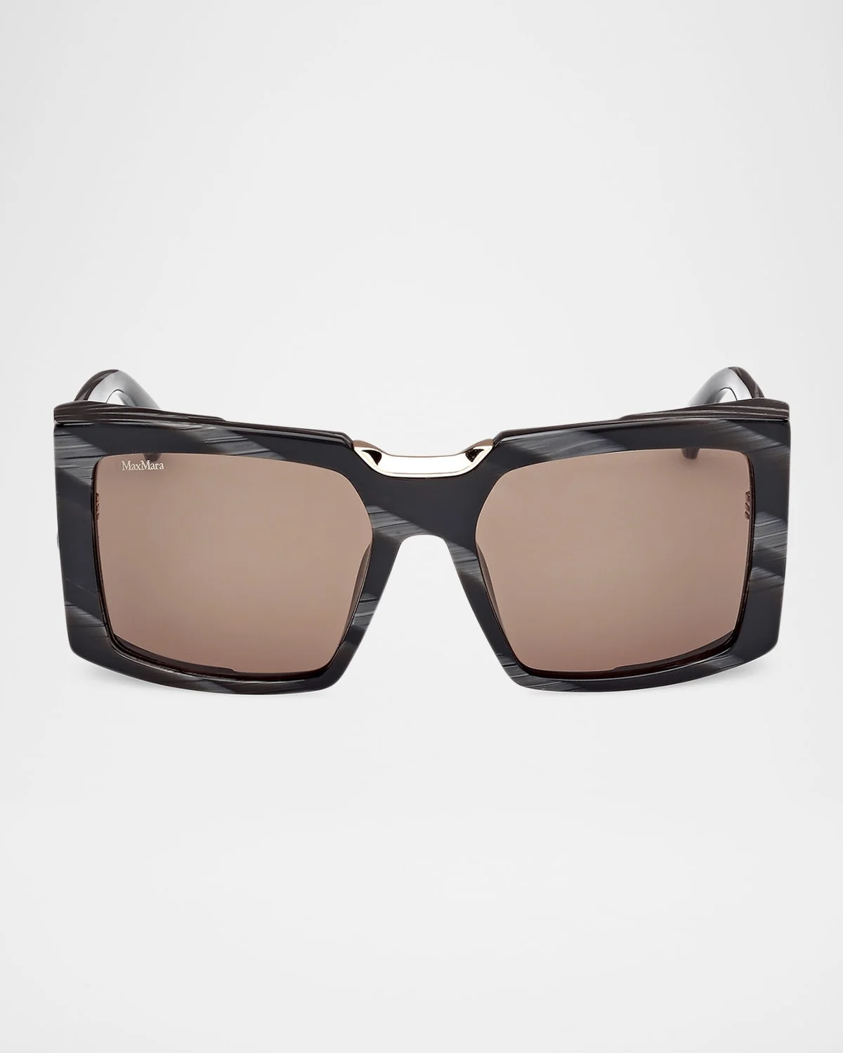 - Max Mara "Spark 6" rectangle sunglasses in acetate - Eye/bridge/temple (in mm): 55-18-135 - Solid color lenses - Saddle nose bridge - Logo at the temples - Thin, tapered arms - Acetate - Spot clean - 100% UVA/UVB protection - Imported - Proposition 65 warning for California residents