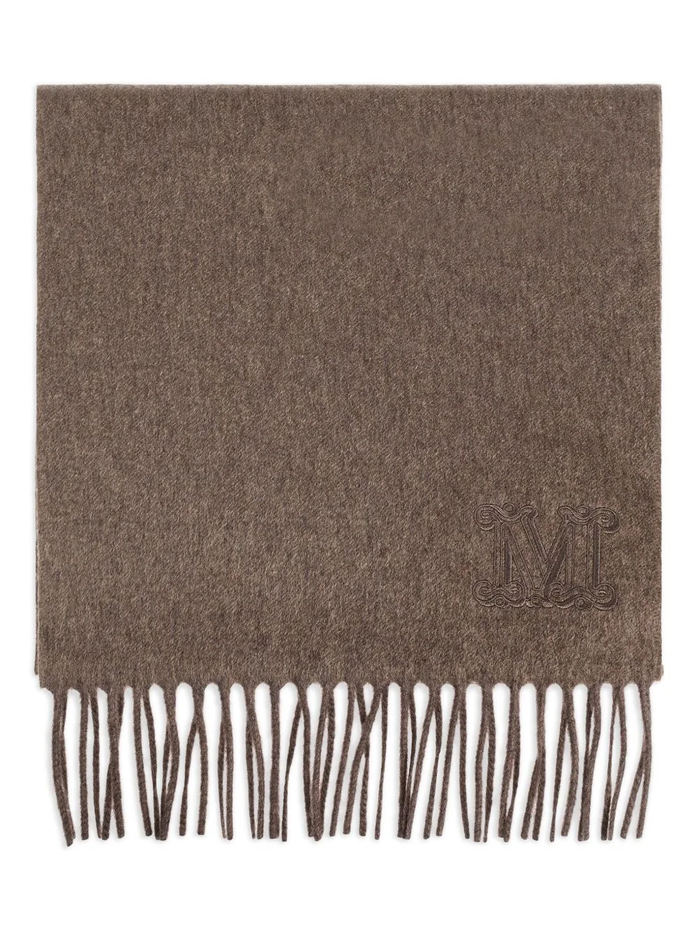 Stole in pure sable cachemire yarn. Fringed pattern on short sides. M Monogram detail embroidered in tone on the hem. product code: 2524546311600037 WSDALIA COMPOSITION 100% cashmere MADE IN ITALY SIZE & FIT 28 x 206 cm