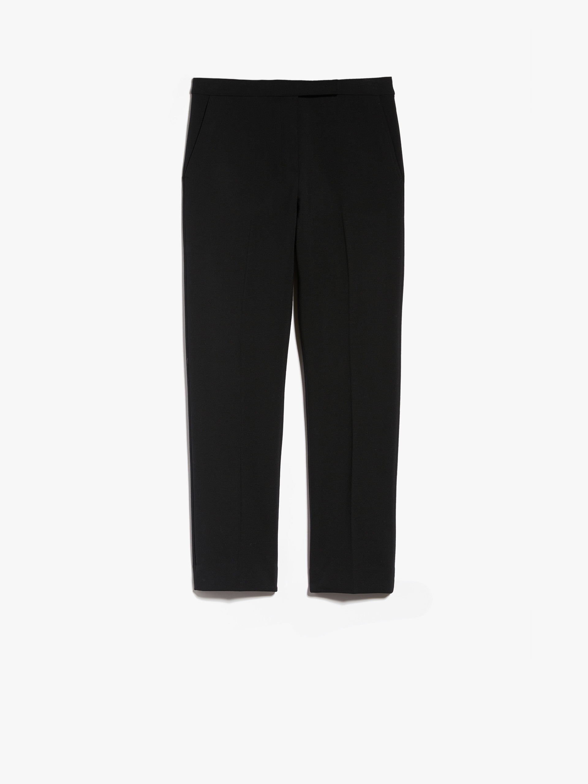 DETAILS Straight trousers in double pure wool fabric with a straight-leg silhouette cropped at the ankle and a slightly small volume. The item features a trouser crease, slant side pockets and buttoned back pockets. Fastening with high waistband, zip with a flap and small hook. COMPOSITION AND CARE Fabric 96% virgin wool, 4% elastane; - except joining thread. Do not wash; do not bleach; do not tumble dry; cool iron; professionally dry clean perchloroethylene - mild process; do not wet clean.; wash the garment while it is fastened. Distributed by Max Mara S.r.l., registered office in Reggio Emilia (Italy), Via Giulia Maramotti 4, 42124 (IT)