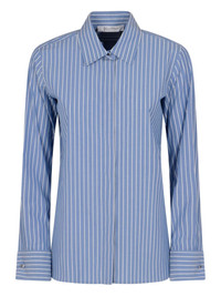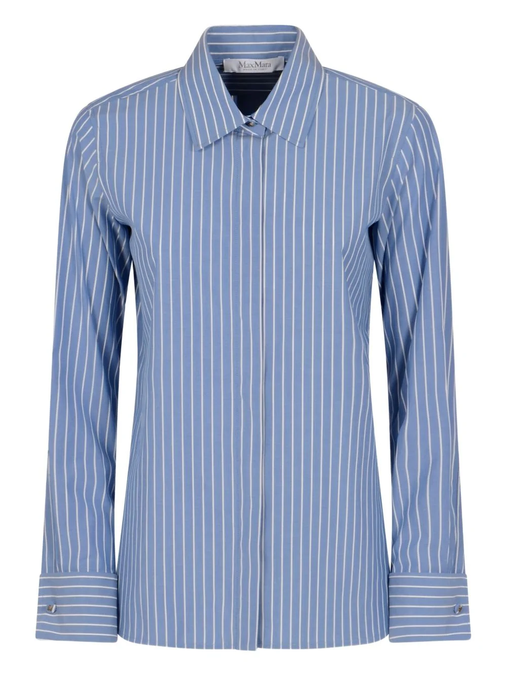 striped cuff cotton shirt Highlights - Light blue - Vertical stripes - Long sleeves - Button front fastening - Buttoned cuffs Imported Composition Cotton 97%, Elastane 3% Washing instructions Read Manufacturer Guidelines