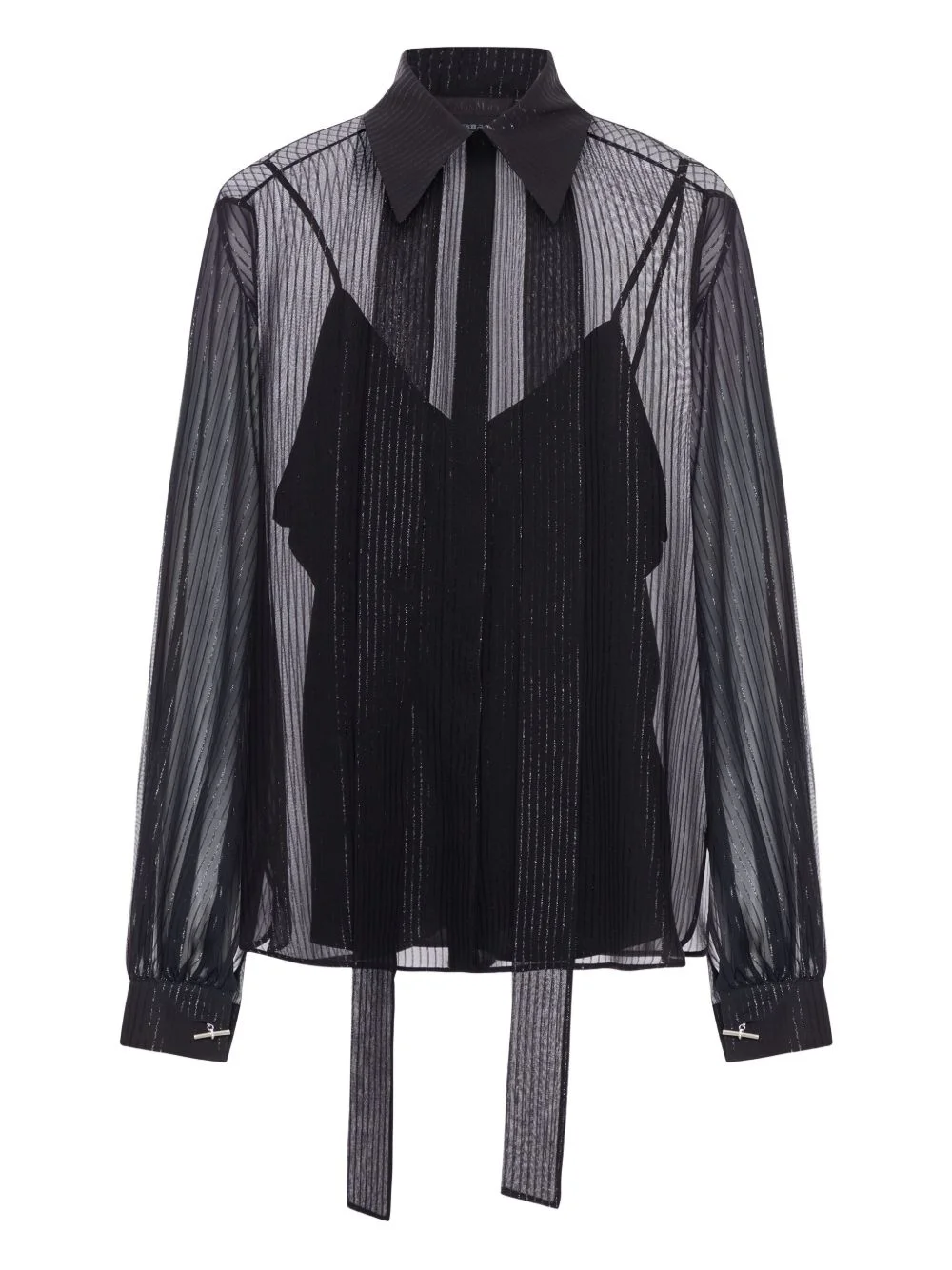 striped silk chiffon shirt Highlights - Black - Striped - Tie detail - Long sleeves - Buttoned cuffs - Collared Made in Italy Composition Outer: Silk 92%, Nylon 8% Lining: Acetate 85%, Silk 10%, Polyamide 5% Washing instructions Dry Clean Only