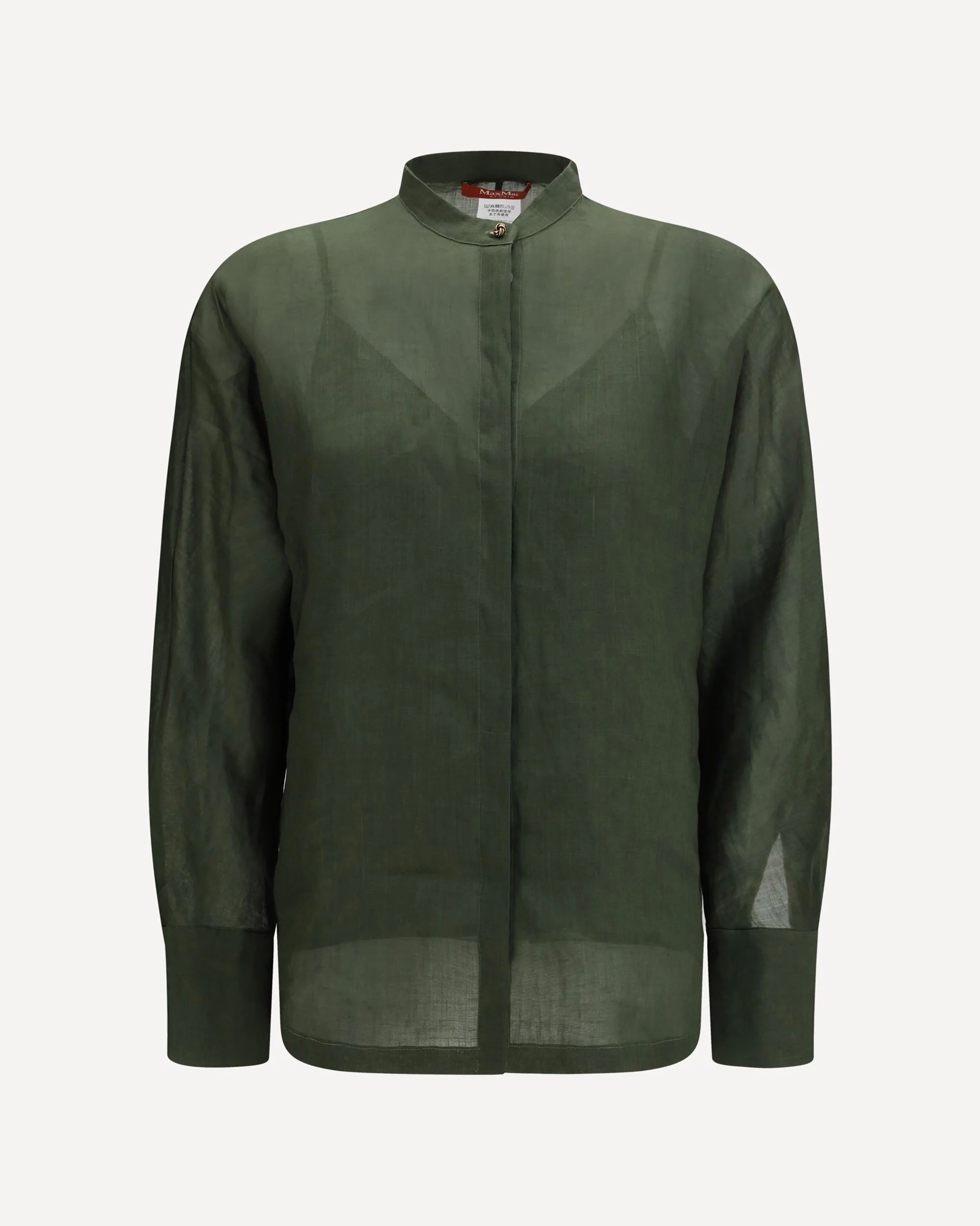 The Baldi ramie canvas Shirt by Max Mara Studio stands out for a boxy silhouette that interprets contemporary design with essential clarity. The Baldi model by Max Mara Studio is crafted in ramie canvas and features a mandarin collar with a concealed front closure and a visible first button that define a clean profile. Long kimono-cut sleeves with high cuffs and jewel cufflinks introduce a refined detail to the design. A matching slip top completes the Baldi ramie canvas shirt by Max Mara Studio with a fluid and balanced fit. DETAILS - Sku: 2616261032600_061 - Season: SS26 - Fit: Regular - Composition: GENERAL 100% Ramie - MADE IN CHINA