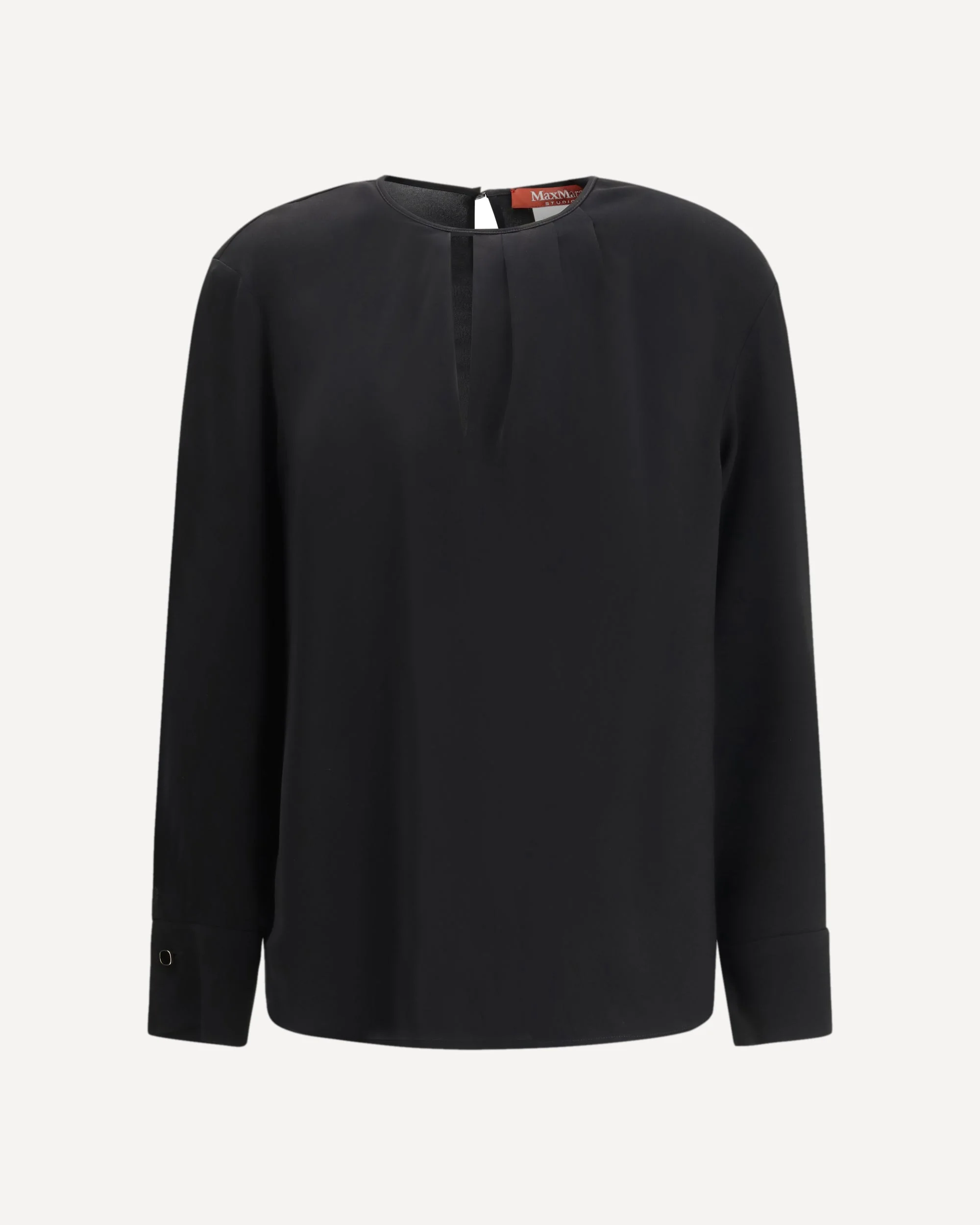 The crew-neck Blouse by Max Mara Studio embodies a refined, feminine elegance. The design is enhanced by a gathered detail at the neckline, adding soft movement to the silhouette. Buttoned cuffs finished with gold-tone cufflinks introduce a subtle luxurious accent, while the teardrop button closure at the back of the neck completes the piece with a sophisticated touch. DETAILS - Sku: 2616191025600_001 - Season: SS26 - Fit: Regular - Composition: GENERAL 73% Triacetate 27% Polyester - MADE IN ROMANIA