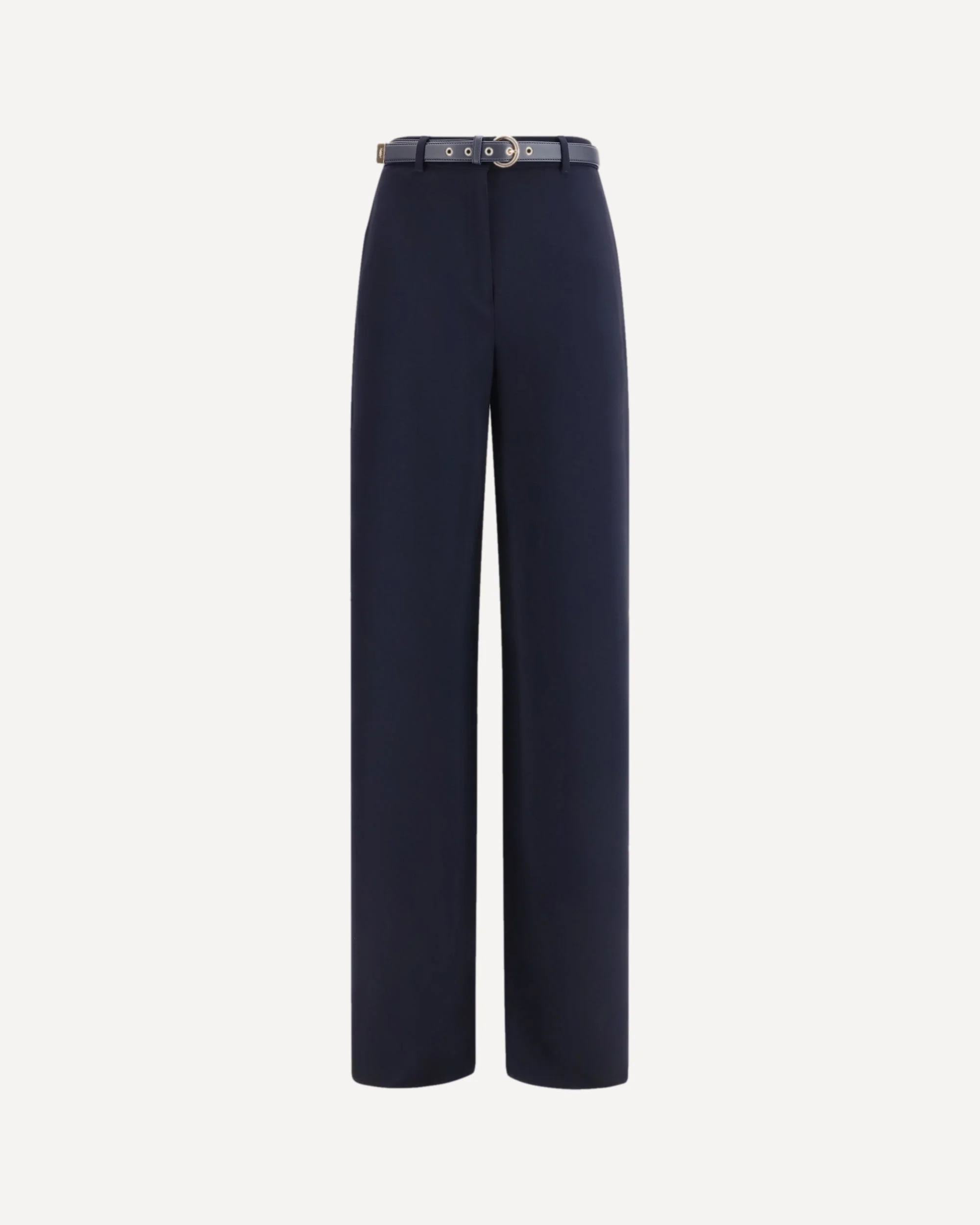 The Elegant Pants with belt by Max Mara Studio express a refined and structured style. Crafted in a luminous Ivory tone, they feature a wide leg that elongates the silhouette and ensures a fluid, elegant fit. The high waist with a structured waistband is finished with a zip, fly, and hook closure for a precise definition of the waist. Slanted pockets and double welt back pockets with buttons, along with the matching Nappa belt, complete the design with a sartorial touch. DETAILS - Sku: 2616131025600_005 - Season: SS26 - Fit: Regular - Composition: GENERAL 71% Triacetate 29% Polyester - MADE IN ROMANIA