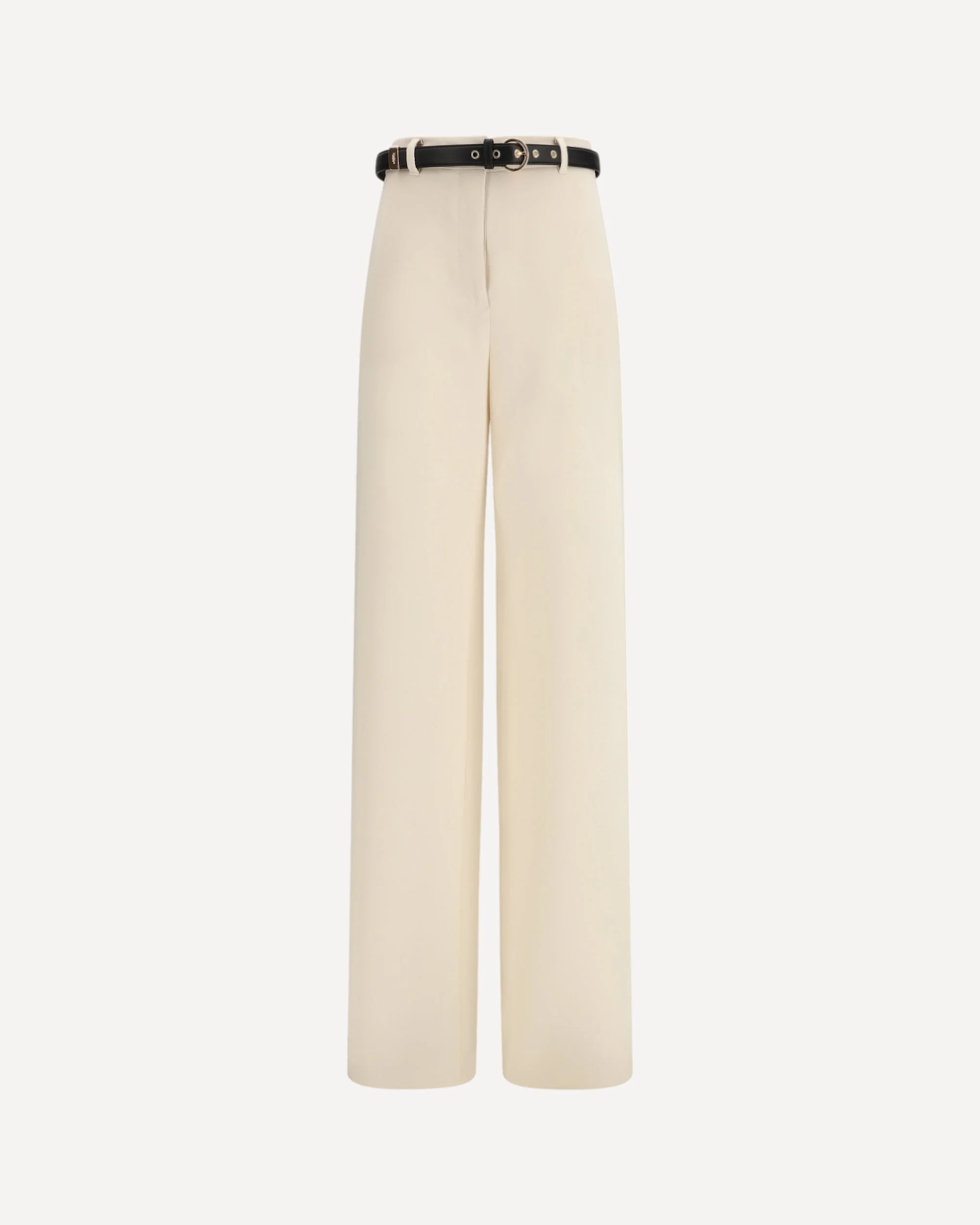 The Elegant Pants with belt by Max Mara Studio express a refined and structured style. Crafted in a luminous Ivory tone, they feature a wide leg that elongates the silhouette and ensures a fluid, elegant fit. The high waist with a structured waistband is finished with a zip, fly, and hook closure for a precise definition of the waist. Slanted pockets and double welt back pockets with buttons, along with the matching Nappa belt, complete the design with a sartorial touch. DETAILS - Sku: 2616131025600_060 - Season: SS26 - Fit: Regular - Composition: GENERAL 71% Triacetate 29% Polyester - MADE IN ROMANIA