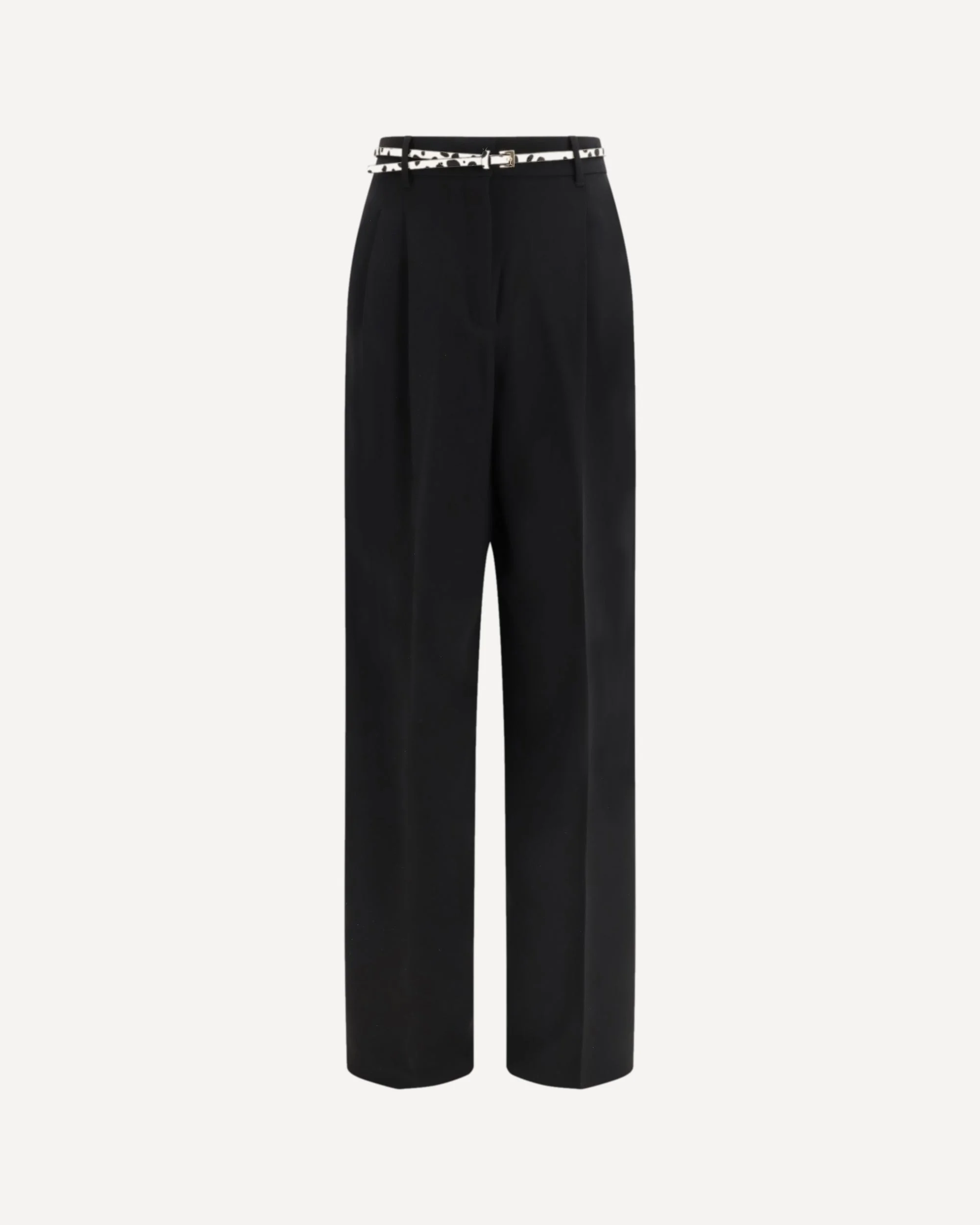 The elegant Pants with belt by Max Mara Studio express a fluid and sophisticated elegance. Crafted from Cady in an ivory tone, they feature a soft silhouette enhanced by double front pleats that add movement and refinement to the line. The wide leg, slightly tapered at the hem, creates a harmonious balance between structure and fluidity. The high waist with zip, fly, and hook closure, along with slanted pockets and the matching belt, completes a versatile and elegant piece. DETAILS - Sku: 2616131015600_001 - Season: SS26 - Fit: Regular - Composition: GENERAL 71% Triacetate 29% Polyester - MADE IN ROMANIA