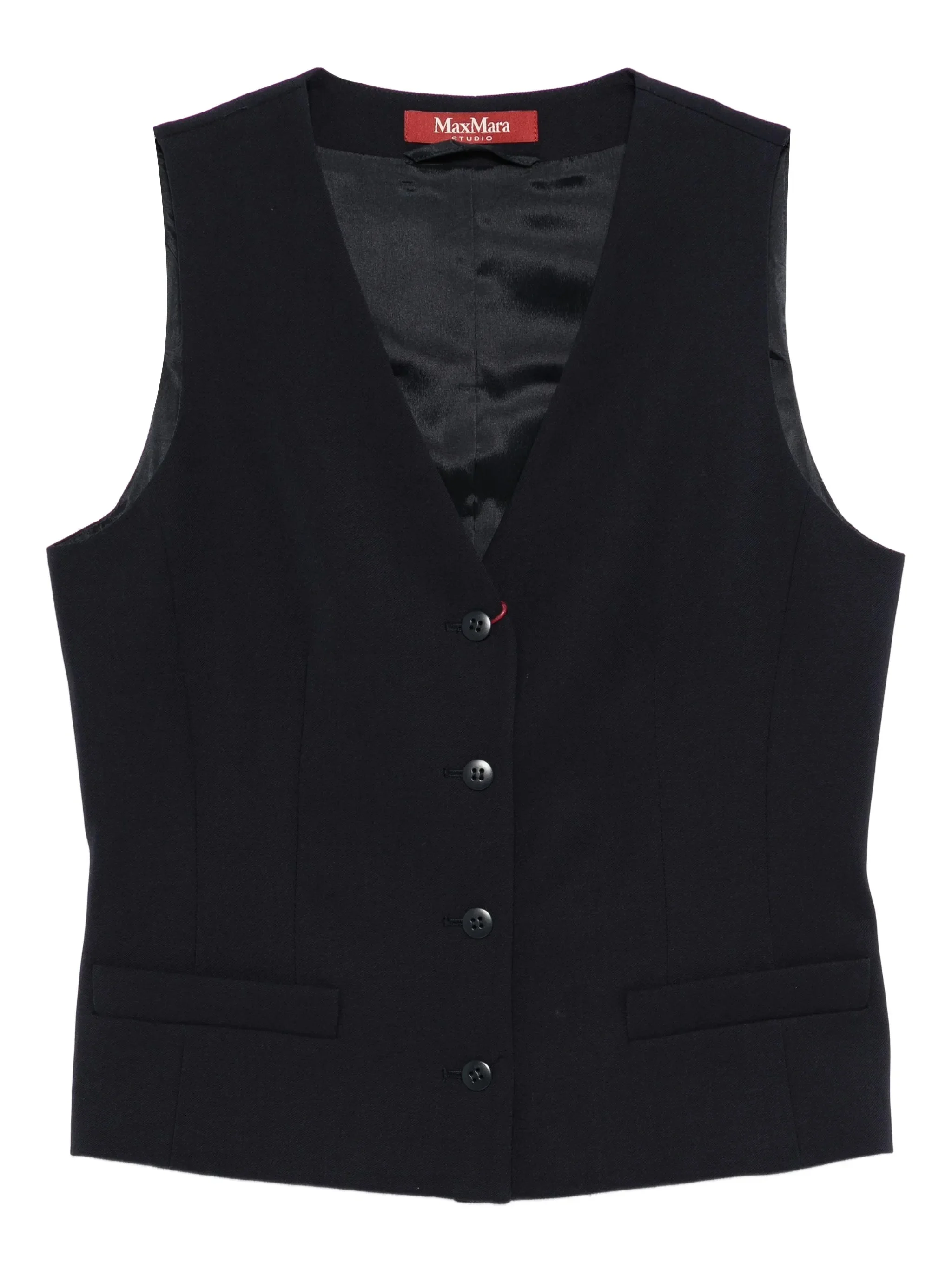 black V-neck button fastening sleeveless - Color: BLUE - Made in: Bangladesh - Designer Style ID: MSTMADIA 331 004 Composition and care Lining Composition Polyester: 30.0%, Lining Composition Acetate: 70.0%, Outer Composition Virgin Wool: 100.0%