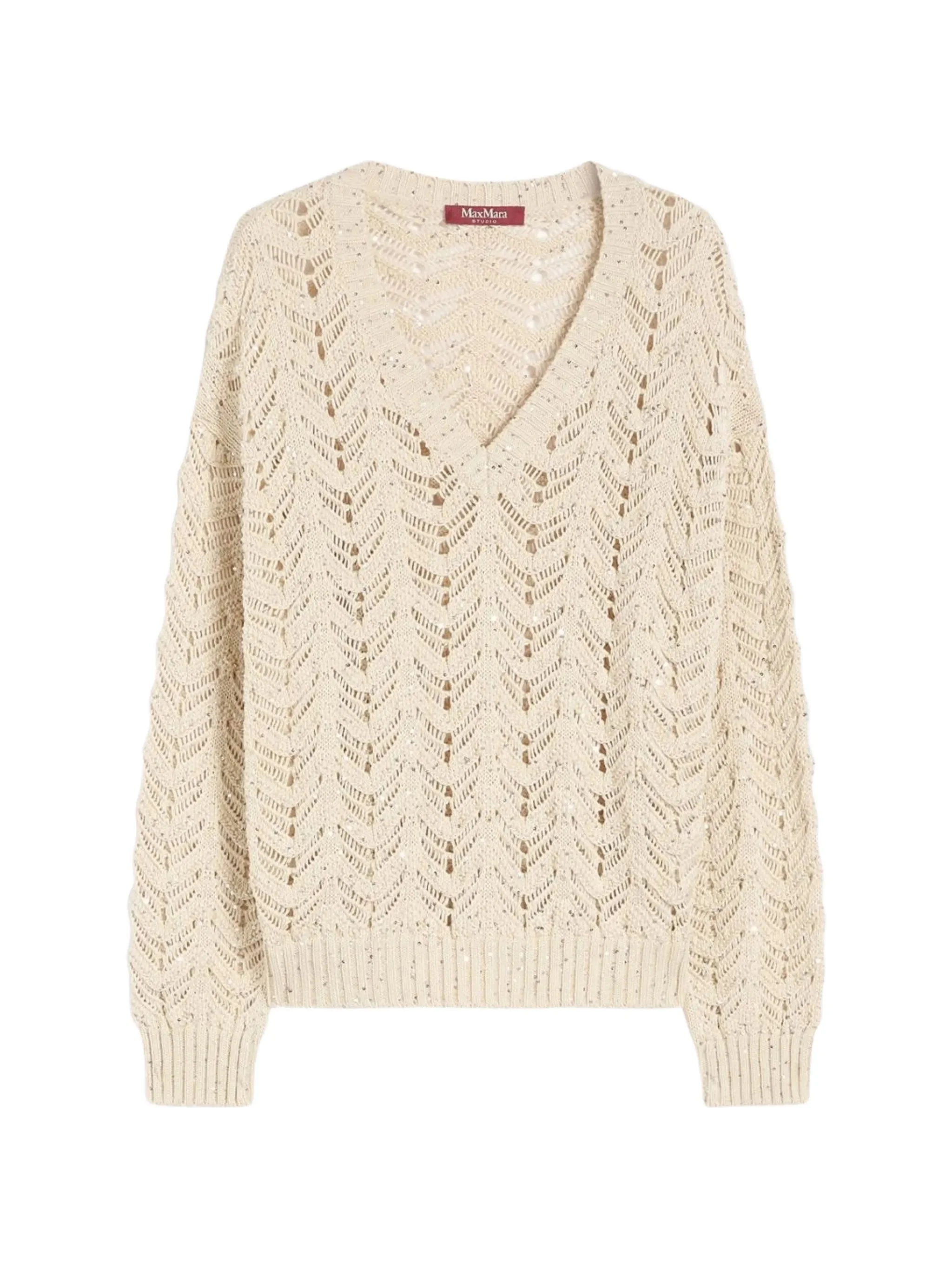 beige openwork knit V-neck - Color: NEUTRALS - Made in: Bangladesh - Designer Style ID: MSTFELINO 136 002 Composition and care Cotton: 100.0%