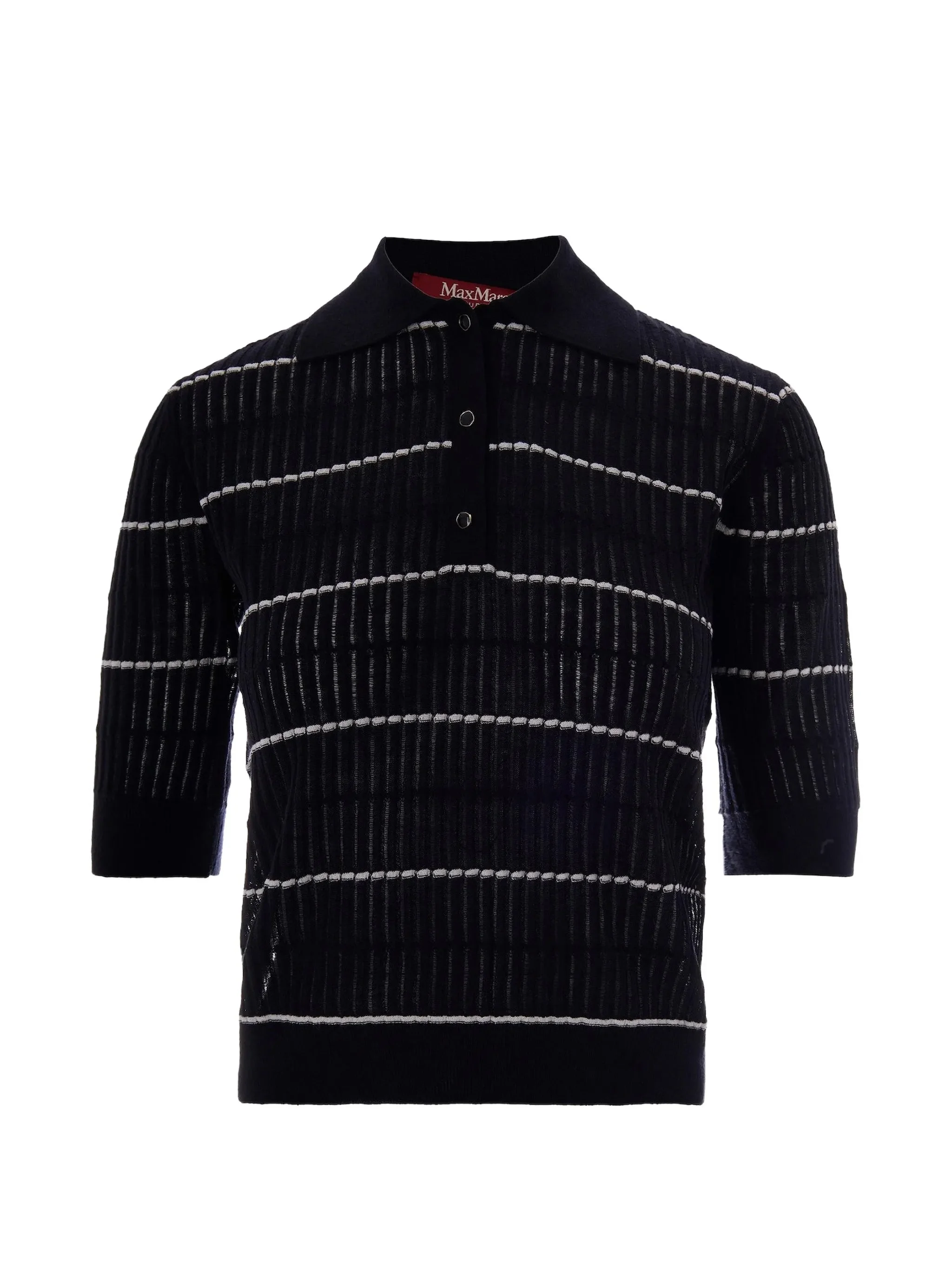 blue striped pattern ribbed knit point collar button fastening three-quarter sleeves - Color: BLUE - Made in: Italy - Designer Style ID: MSTGALLO 031 014 Composition and care Silk: 55.0%, Wool: 45.0%